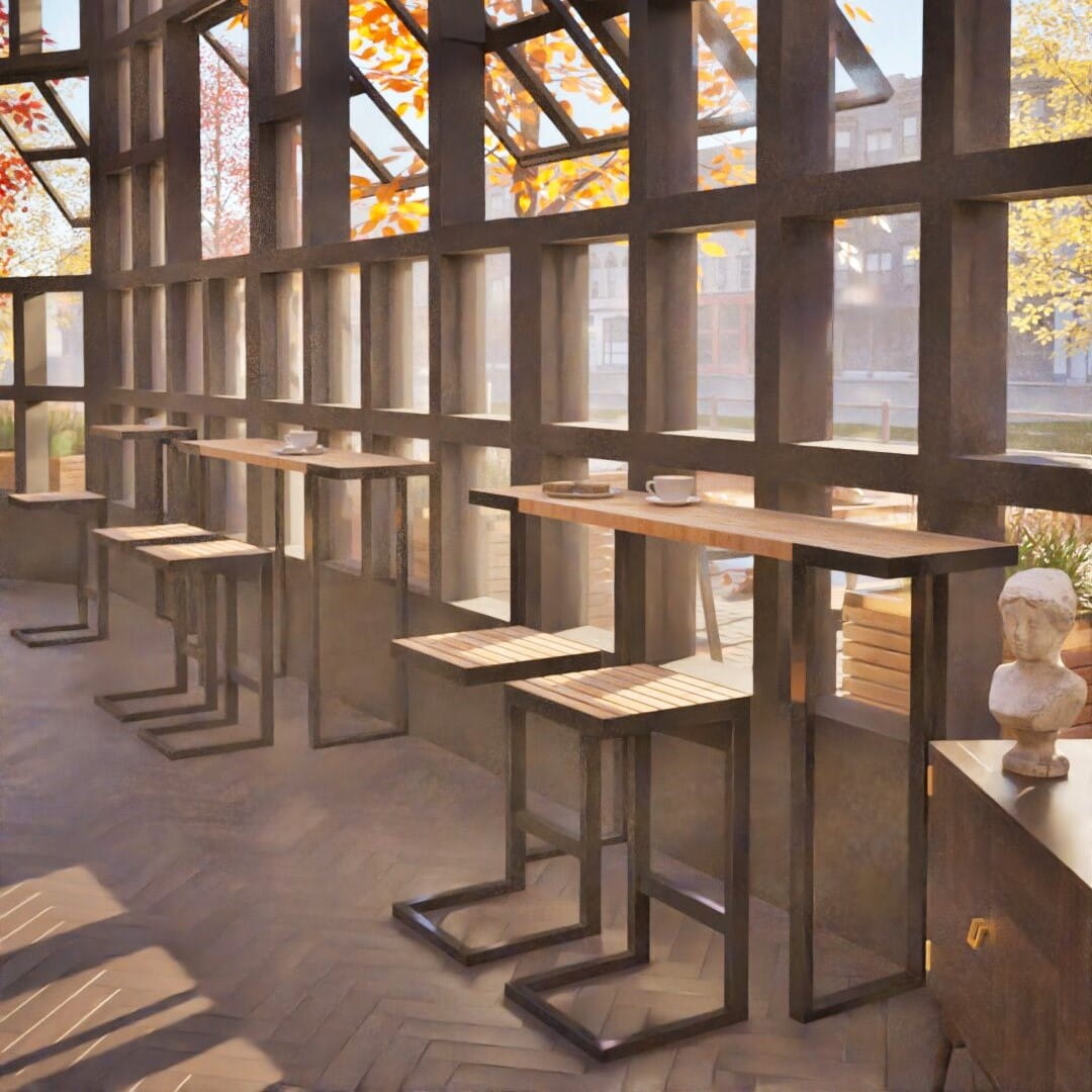 Zestaw barowy Amager 4 stołki i stół | stal i drewno